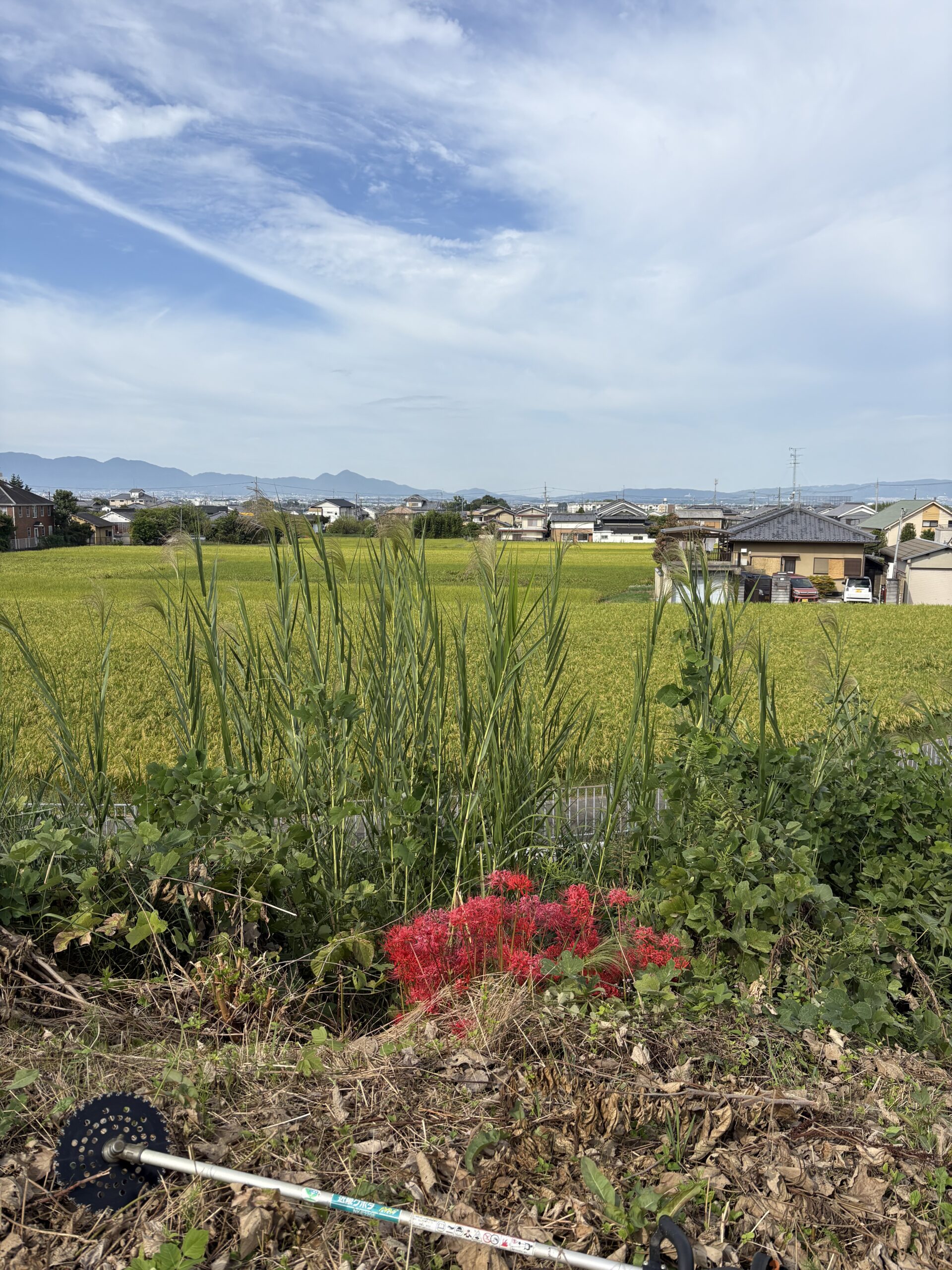 今日は朝から毎年恒例のため池の草刈りでした。
