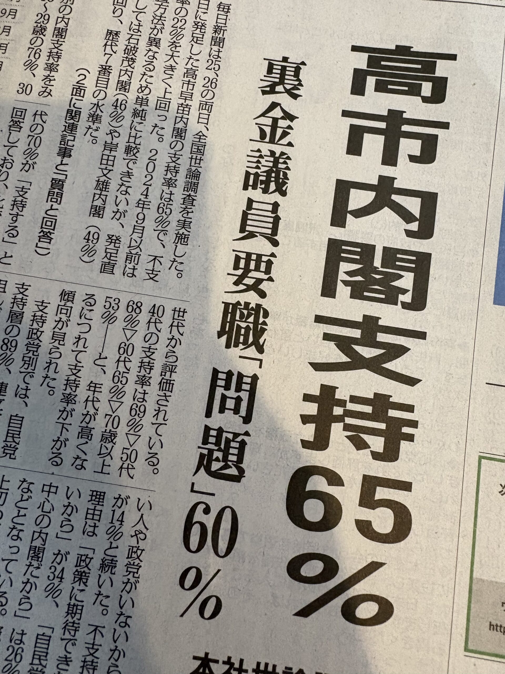 「高市内閣」支持率も高いようです。