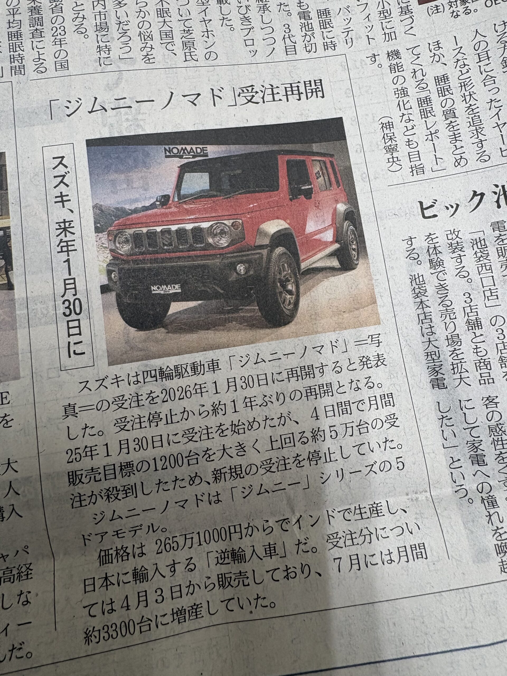 ジムニーノマドの受注が再開されたそうですね。