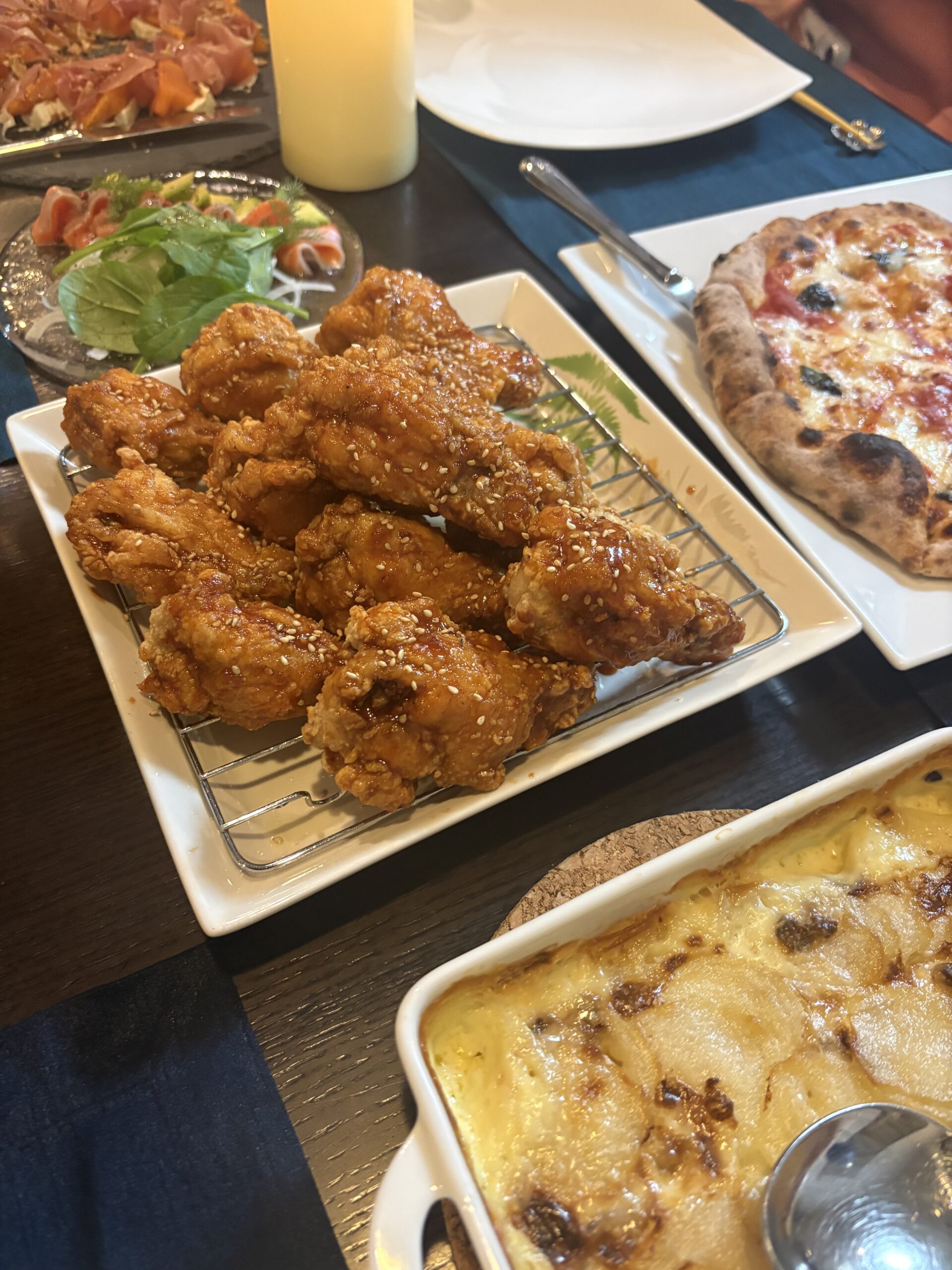 夜は自宅で唐揚げと頂き物のピザのゴハンでした。