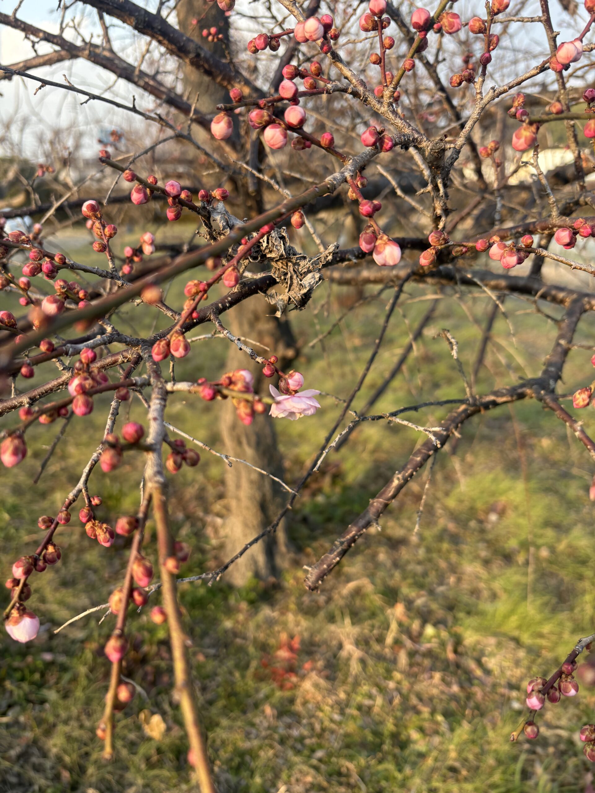夕方、帰宅すると梅が少し開花してました!