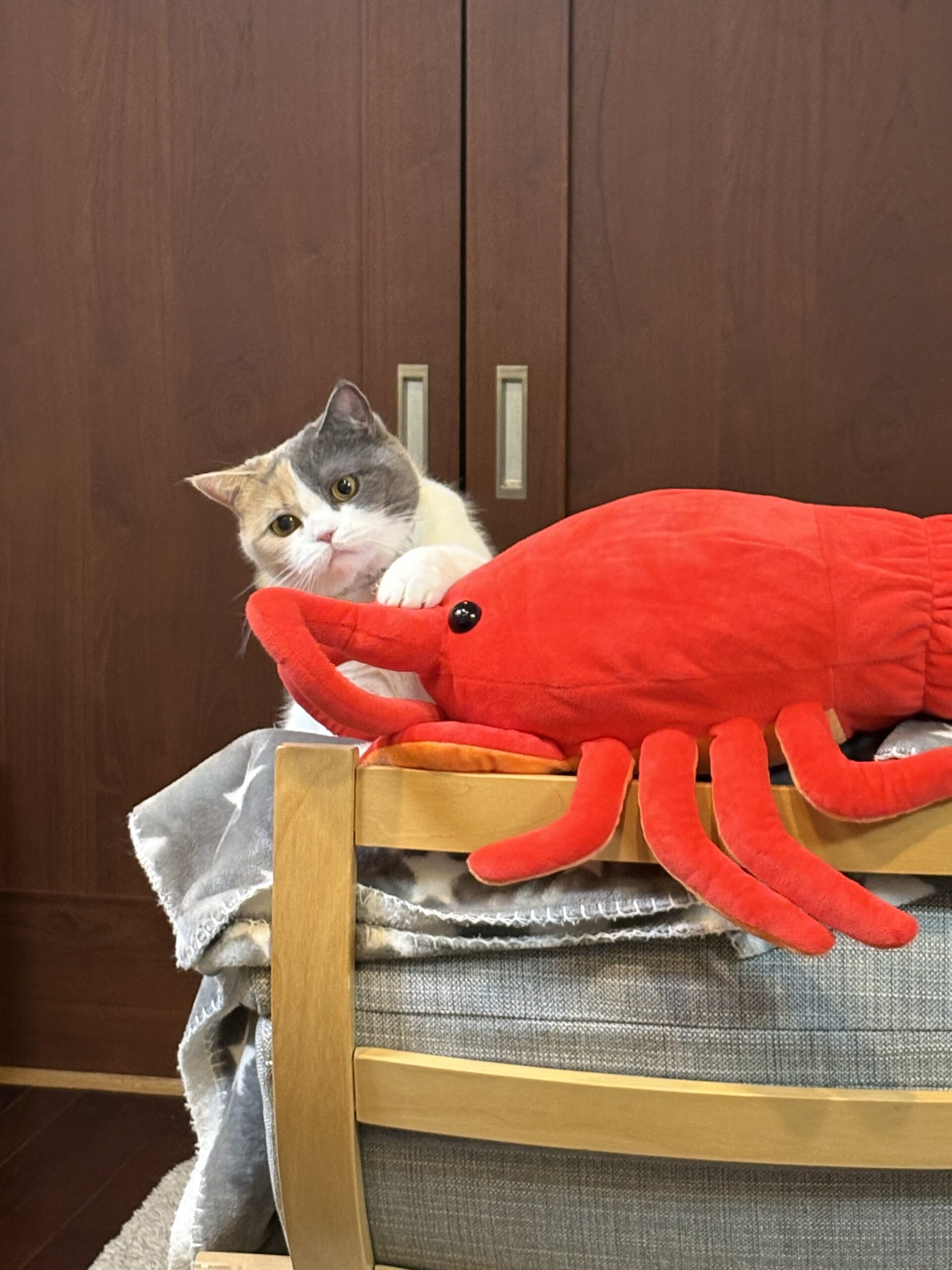 モナカはお土産に買った「伊勢海老さん」に攻撃してました🦞